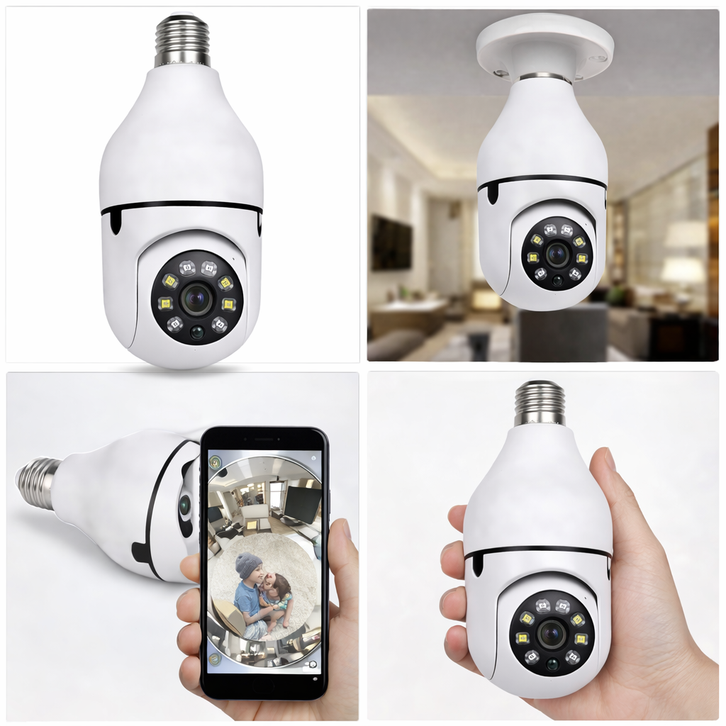 A Câmera Lâmpada 360° IP é a solução ideal para quem quer segurança sem complicação. Com um design inteligente, ela funciona como uma lâmpada comum, mas esconde uma câmera potente com visão completa do ambiente.